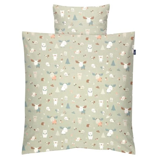 Mit der Bettwäsche 80 x 80 cm – Baby Forest von Alvi wird das Babybettchen, die Wiege und der Kinderwagen zur bequemen und hübschen Schlafstätte. Die zweiteilige Bettwäsche besteht aus einem Kopfkissen- und einem Deckenbezug mit Knopfverschlüssen. Der niedliche Print lädt Dein Baby zum Kuscheln und Träumen ein. Das weiche Material besteht aus reiner, hautfreundlicher Baumwolle und ist besonders atmungsaktiv.