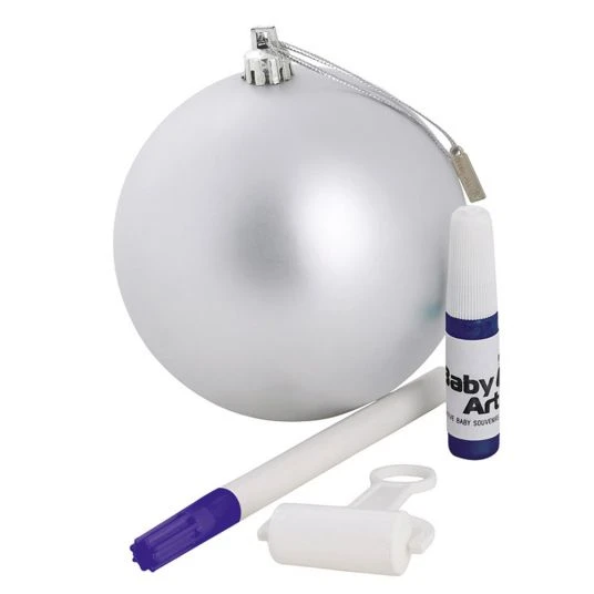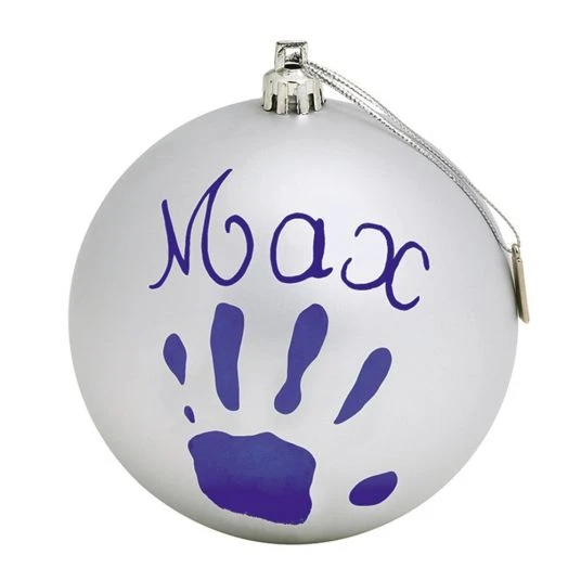 Diese Christbaumkugel für Abdruck & Beschriftung in der Farbe Matt Silber von Babyart ist ein tolles Mitbringsel und Geschenk in der Advents- und Weihnachtszeit! Die Kugel ist aus stabilem, unzerbrechlichem Kunststoff gefertigt und kann mit einem persönlichen Abdruck von Hand oder Fuß Ihres Babys, sowie dem Namen oder einer Botschaft individuell gestaltet werden. Die Handhabung ist dabei einfach: Es ist kein Trocknen im Ofen oder zusätzliches Material notwendig. Alles was Sie benötigen; ist im Set enthalten. Neben der Kugel ist ein Abroller, ein Stift und eine Halterung im Lieferumfang enthalten.