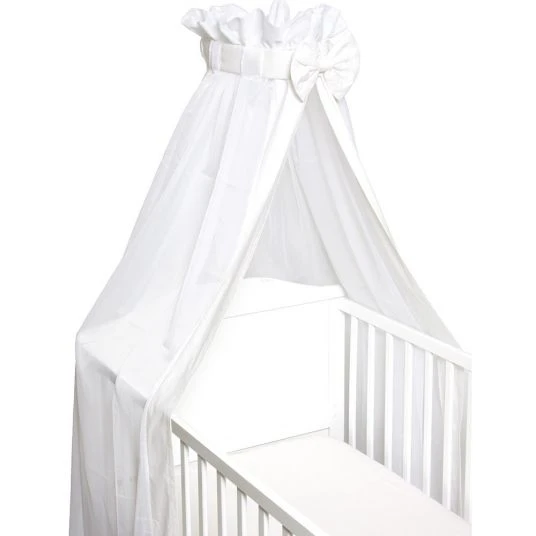 Der Betthimmel Basic in Weiß von Fillikid verwandelt Dein Baby Bettchen im Handumdrehen in eine romantische Schlafstätte. Gefertigt aus Baumwolle und zartem Tüll ist der Betthimmel mit der Schleife und dem weißen Saum ein wunderschöner Blickfang. Passend für Betten in den Maßen 60 x 120 cm und 70 x 140 cm oder quer für Beistellbetten – z.B. Beistellbett Premium Vario 3in1.