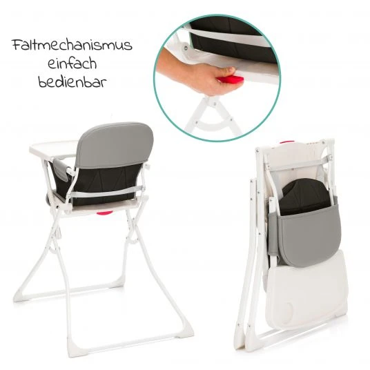 Wenn es euch Zuhause an Platz fehlt oder ihr einen Hochstuhl nur zeitweise braucht, haben wir die perfekte Lösung. Der Hochstuhl Tom mit Essbrett klein faltbar – Granit von Fillikid bietet Deinem Kind Sicherheit und Komfort und lässt sich zugleich schnell aufbauen und wieder verstauen. Aufgrund seines geringen Gewichts lässt er sich auch leicht per Hand von einem Ort zum anderen transportieren, ähnlich wie ein Klappstuhl, und sehr platzsparend verstauen.