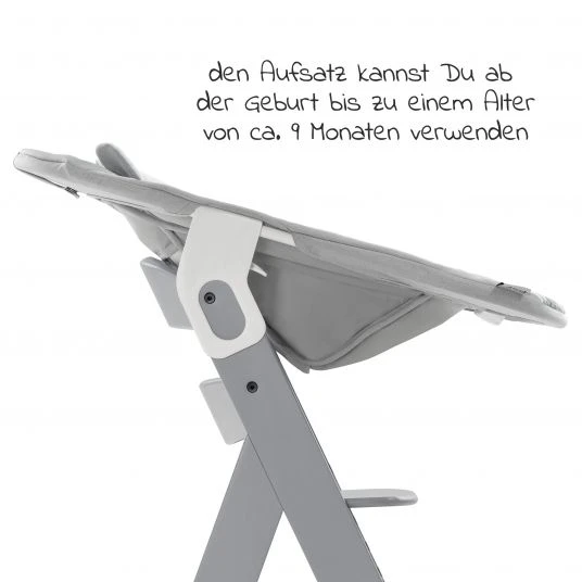 Verwendung als Neugeborenenaufsatz: Perfekt zum Füttern. Stelle den Hochstuhl mit Babyaufsatz an den Tisch und Dein Kind kann die Mahlzeiten gemeinsam mit der Familie genießen. Dein Liebling ist ganz nah bei Dir und darf das Geschehen auf Augenhöhe beobachten. Gleichzeitig musst Du Dich beim beim Füttern nicht so sehr bücken und schonst Deinen Rücken.