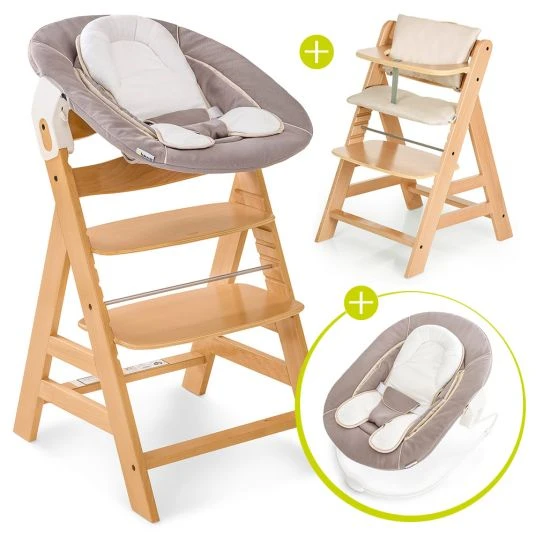 Jetzt exklusiv bei Babyartikel.de – das Alpha Hochstuhl-Set ab der Geburt.3in1 Paket: Inkl. Alpha Hochstuhl, Neugeborenenaufsatz und Babywippe sowie einem weichen Sitzpolster.