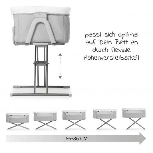 Ob hohes Boxspringbett oder niedriges Bett – das Hauck Beistellbett passt sich an. Durch die 5-fache Höhenverstellbarkeit von 66 bis 86 cm lässt es sich optimal auf Dein Bett einstellen. Damit das Beistellbettchen nicht wegrutschen kann, wird es mit 2 Gurten sicher an Deinem Bett befestigt. Zusätzlich bietet das kippsichere Untergestell einen stabilen Stand.