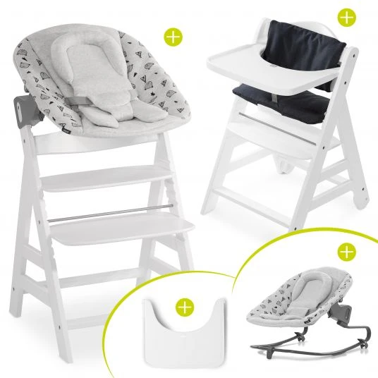 - Inkl. Beta Hochstuhl, Newborn Aufsatz Premium, Sitzverkleinerer, Babyset (Schutzbügel), Essbrett, Sitzpolster, 5-Punkt Gurt