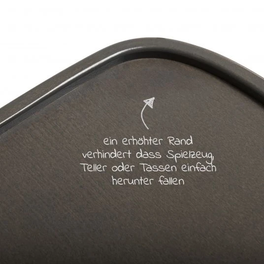 - Essen, Spielzeug & Co. stehen sicher auf dem Tisch durch den erhöhten Rand