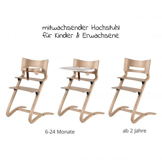 Was gibt es Praktischeres als mitwachsende und zeitlose Kindermöbel! Mit dem 6-teiligen Leander Hochstuhl-Set Classic mit Bügel, Tablett, Ledergurt, Sicherheitsgurt & Sitzkissen erhältst Du ein wandelbares Multitalent. Der Leander Hochstuhl Classic™ ist stabil, individuell einstellbar und mitwachsend. Somit lässt er sich ab ca. 6 Monate bis zum Erwachsenenalter nutzen.