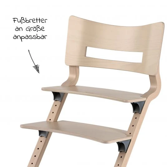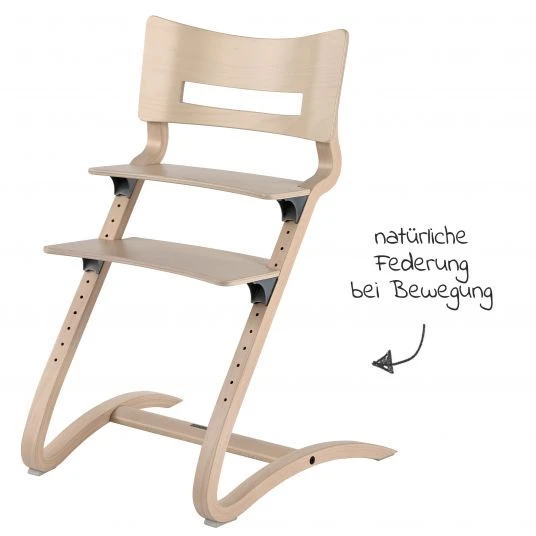 Für einen optimalen Komfort können die Rückenlehne, der Sitz und das Fußbrett jederzeit an die Größe Deines Kindes angepasst werden. Die gebogenen Beine des Hochstuhls sorgen für Stabilität und verhindern, dass der Stuhl nach hinten kippt. Während dem Sitzen wippt der Hochstuhl sanft mit, so dass die natürliche Bewegung angeregt und unterstützt wird. Dies fördert außerdem ein gutes Körpergefühl und es hilft Deinem Nachwuchs dabei, ruhiger am Tisch zu sitzen.