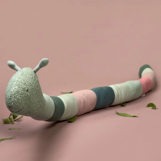 Die süße Bettschlange Fridolin die Raupe mit Rassel aus der LÄSSIG Garden Explorer Kollektion ist ab Geburt ein wunderschöner Begleiter für kleine Entdecker und Naturfreunde. Das 163 cm lange Kuscheltier kann prima im Bettchen oder auf dem Wickeltisch eingesetzt werden und den Kleinsten als kuscheliger Begleiter zur Seite stehen und dabei eine geborgene Atmosphäre erzeugen. Doch auch als Zugluftstopper ist das Kuscheltier aufgrund seiner rollenartigen Form gut nutzbar.