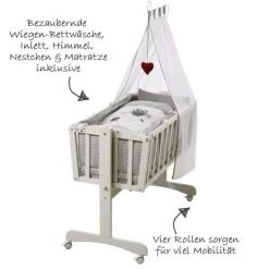 Roba 4in1 Stubenbett, Beistellbett, Wiege und Bank & Textile-Ausstattung – Liebhabär – Natur