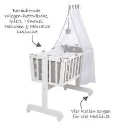 Roba 4in1 Stubenbett, Beistellbett, Wiege und Bank & Textile-Ausstattung – Adam & Eule – Weiß