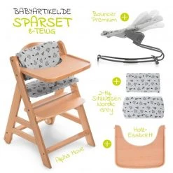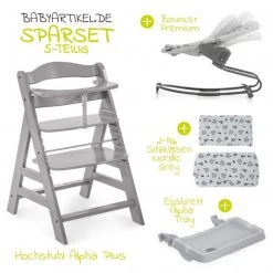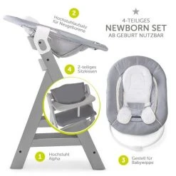 Hauck Alpha Plus Grey Newborn Set – 3-tlg. Hochstuhl + Neugeboreneneinsatz & Wippe Stretch Grey