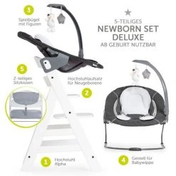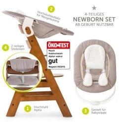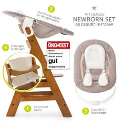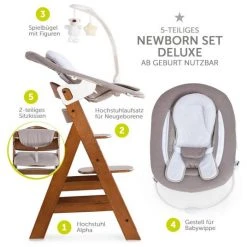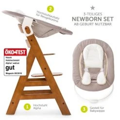 Hauck Alpha Plus Walnut Newborn Set – 3-tlg. Hochstuhl + Neugeboreneneinsatz & Wippe Stretch Beige