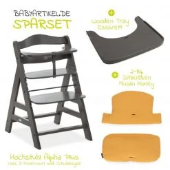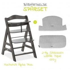 Hauck Hochstuhl Alpha Charcoal Selectline – im Sparset inkl. Sitzkissen Waffle Pique Grau