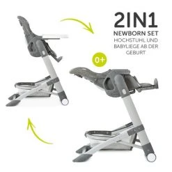 Hauck Hochstuhl & Babyliege ab Geburt – Grow Up Newborn Set (faltbar & klappbar) – Melange Grey