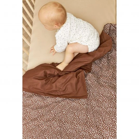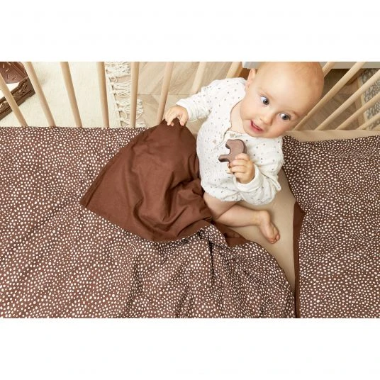 Damit Dein kleiner Schatz nachts ruhig und entspannt schläft, muss er sich rundum wohlfühlen. Mit der Meyco Bettwäsche Cheetah in Chocolate liegt Dein Nachwuchs komfortabel in weicher, anschmiegsamer Baumwolle. Der kuschelige Stoff trägt zu einem angenehmen Schlafklima bei und lädt zum Träumen ein. Dank der zwei verschiedenen Seiten kann die kleine Schlafmütze selbst entscheiden, ob heute das Punktemuster oder die einfarbige Seite oben zu sehen sein soll.