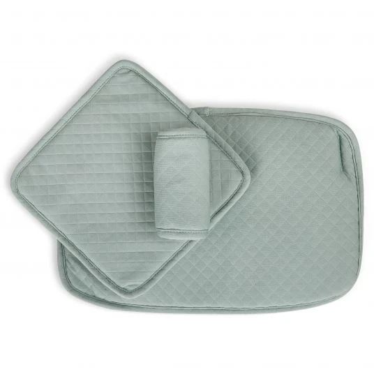 Besonders bei längerem Sitzen ist der hölzerne Hochstuhl ohne jegliche Polsterung mit der Zeit etwas hart. Das Moji Kissen-Set für den Yippy Hochstuhl in schönem Mint sorgt für einen angenehmen Sitzkomfort: Bestehend aus einem Bezug für den Schutzbügel, ein gepolstertes Rückenlehnen-Kissen und einem Sitzkissen fühlt sich Dein kleiner Spatz rundum wohl.