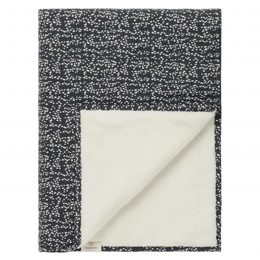 Egal ob Unterwegs oder Zuhause – diese kuschelig weiche Babydecke mit Wendefunktion Teddystoff Fancy Dot in Forged Iron von Noppies schenkt deinem Baby Geborgenheit und Wärme.Dank des Materials mit hohem Bio-Baumwollanteil lädt sie zum Kuscheln und Wohlfühlen ein. Mit den praktischen Maßen 75 x 100 cm lässt sie sich super platzsparend zusammenlegen und überallhin mitnehmen. Das tolle Tupfen-Muster macht die Decke zu einem echten Hingucker und einer tollen Geschenkidee.
