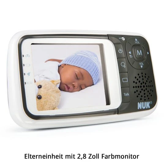 Das Babyphone Eco Control Video von NUK ermöglicht es Dir, den Schlaf Deines Babys einfach und sicher zu überwachen. Die Geräusche Deines Kindes werden klar übertragen – zusätzlich wird ein hochauflösendes Bild aus dem Kinderzimmer auf die Elterneinheit gesendet. Diese ist mit einem 2,8 Zoll-Farbmonitor ausgestattet.