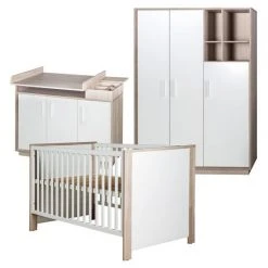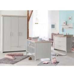 Roba Kinderzimmer Helene mit 3-türigem Schrank, Bett, breiter Wickelkommode – Lichtgrau