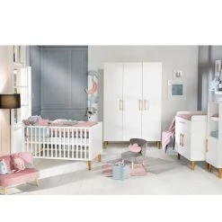 Pinolino Kinderzimmer Pino mit 2-türigem Schrank, Bett, breiter Wickelkommode – Kiefer massiv
