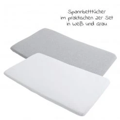 Maxi-Cosi Spannbetttuch 2er Pack für Reisebett Iris – Weiß / Grau – Kollektion 2022