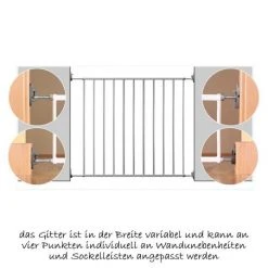 Die extra breiten Stützfüße werden einfach und unkompliziert auf den Lattenrost gestellt Das integrierte Gurtsystem kann individuell an die Breite des Bettes angepasst und mit dem Lattenrost verbunden werden. Dazu wird die Fixierplatte aus Metall an der gegenüberliegenden Innenseite des Bettes angebracht. Hierzu benötigen Sie keinerlei Schrauben. Das Gitter ist nun stabil mit dem Bett verbunden. Anschließend legen Sie wie gewohnt die Matratze auf den Lattenrost. Dank dieses Systems können Sie das Bettgitter auch für Betten ohne umlaufenden Rahmen verwenden.
