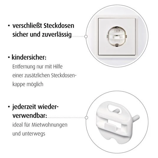 - schützt Dein Kleines vor Stromunfällen durch das sichere Verschließen der Steckdosen