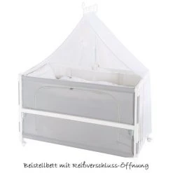 Wird das Nestchen auf einer Seite heruntergeklappt, kannst Du das Bett als Beistellbettchen verwenden. So kannst Du, in den ersten Monaten nach der Geburt, extra viel Zeit mit Deinem Nachwuchs verbringen und hast Dein Baby immer ganz nah bei Dir.