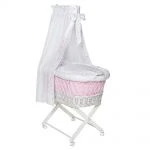 Die Multifunktionswiege 5-1 Weiß inkl. textiler Ausstattung – Herzchen – Rosa von Schardt begeistert nicht nur als Wiege sondern auch als Stubenwagen, Beistellbett, kleines Gitterbettchen oder als Kinderbank. Für den problemlosen Umbau sind im Lieferumfang praktische Rollen inbegriffen. Ebenfalls enthalten sind eine Matratze, eine Himmelstange sowie die hochwertige 4-teilige Textilausstattung. Sie sorgt in Babys Schlafstätte für den notwendigen Kuschelkomfort. Komplett wird das Set durch die Himmelstange aus Metall. Mit ihrer Hilfe kannst Du den romantischen Betthimmel befestigen.