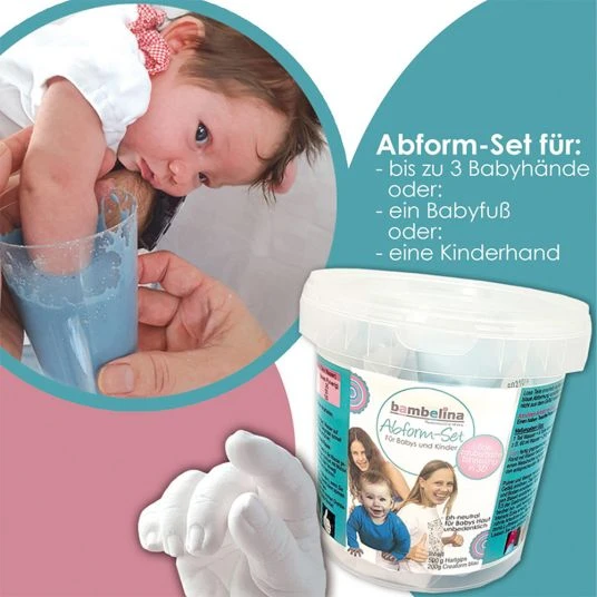 Im Set enthalten ist ein Abformpulver, mit welchem Du einen Abdruck der Hand oder des Füßchens nehmen kannst. Wird diese dann mit der Gießmasse aufgefüllt und getrocknet, entsteht daraus eine kleine “Skulptur”. Dabei wurde jeder Fingernagel, jede kleine Falte und Poren festgehalten, so dass die Nachbildung fast wie die echte Hand oder ein echtes Füßchen aussieht.